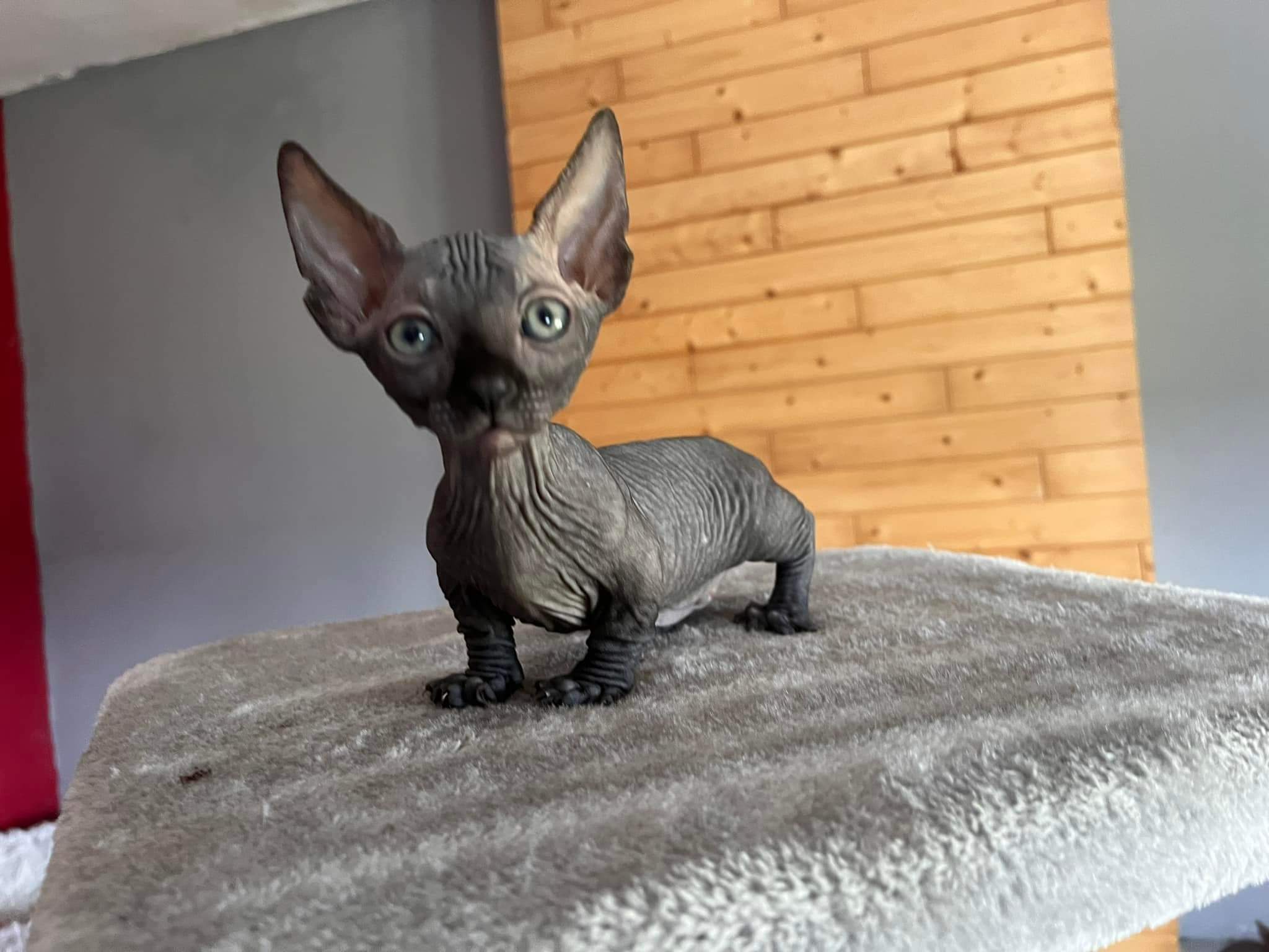 The Peter is a rare kitten with both beauty and personality. Sphynx Bambino cats are known for being affectionate and intelligent. They form strong bonds with their humans, often curling up under a jumper or duvet to stay warm. Because they thrive on companionship, these kittens are happiest in homes where they are not left alone for long periods.